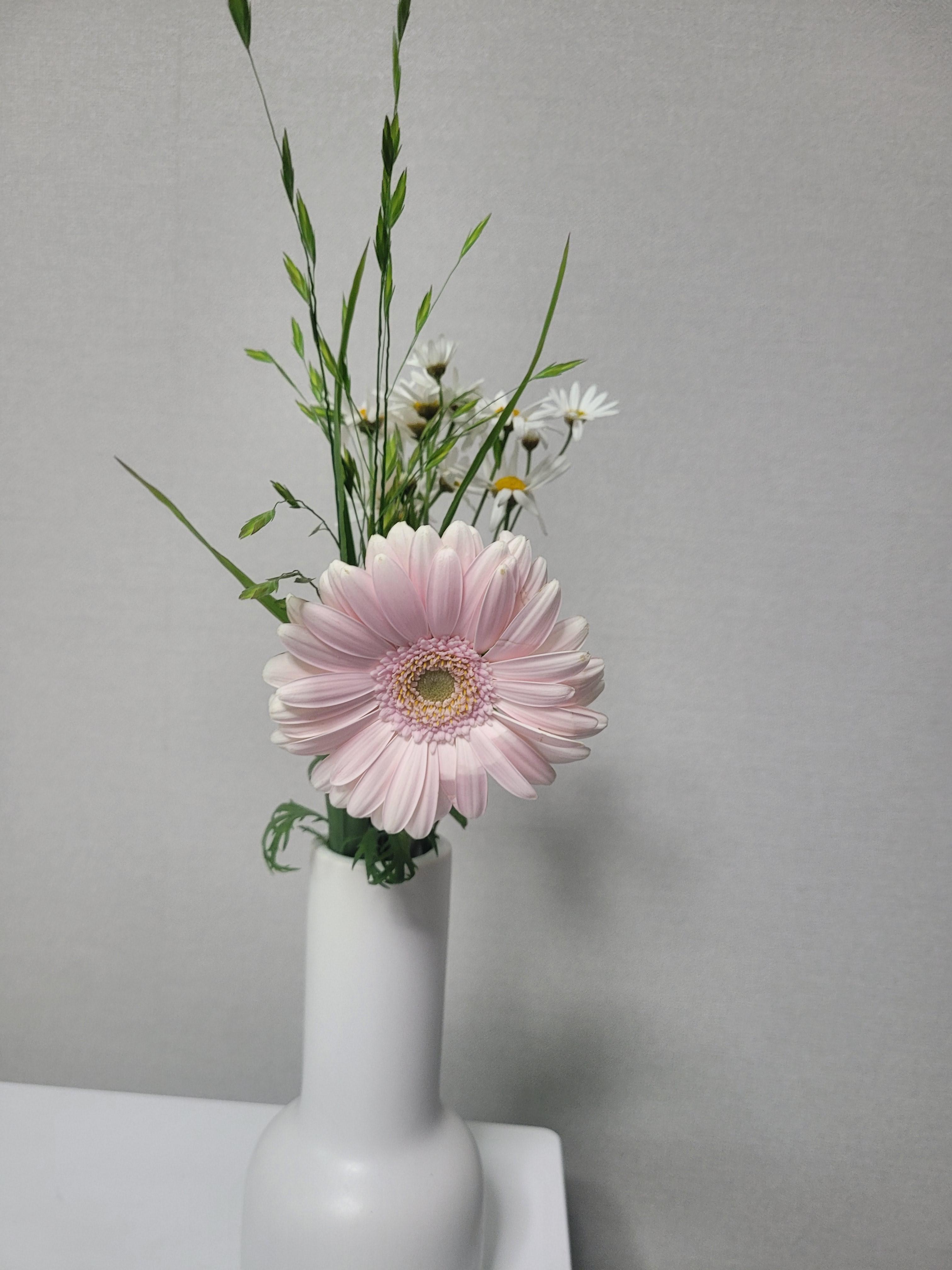 다이소에서 샀었던 화병에 꽃을 꽂았다.