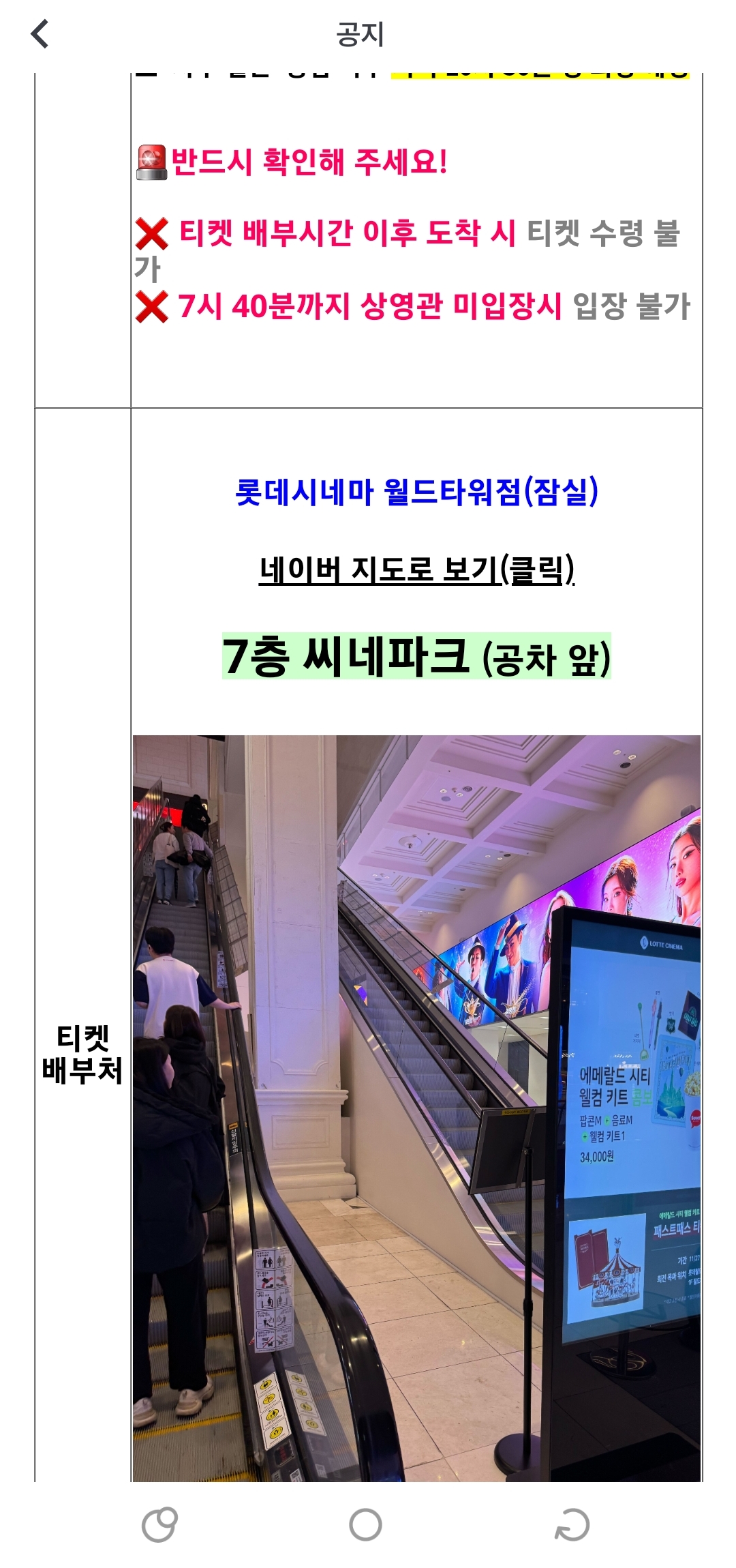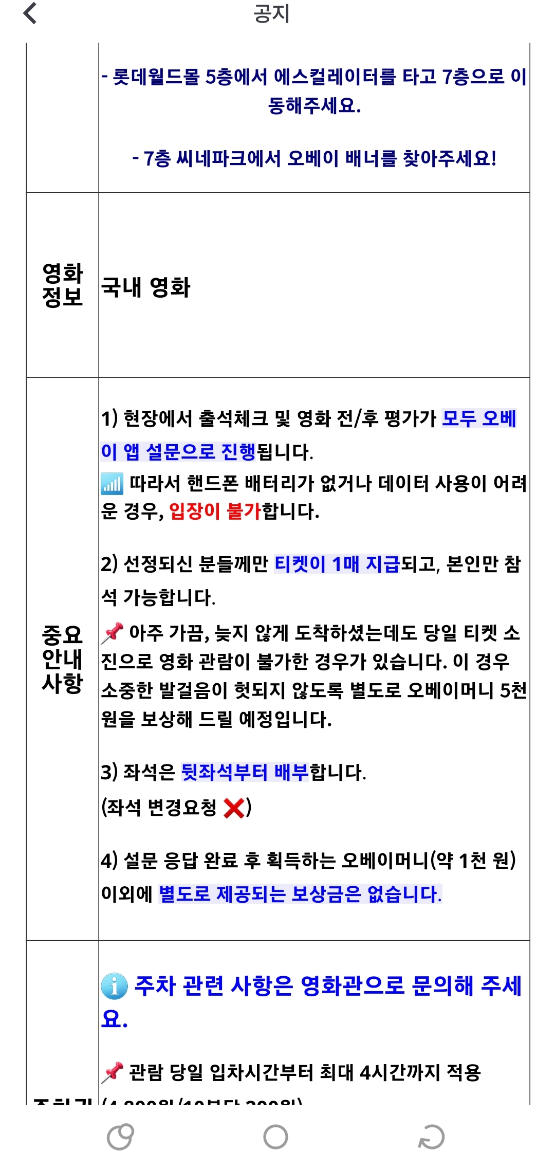 시사회일정 5일전에 아래와같이 어플에 공지로 뜬다.