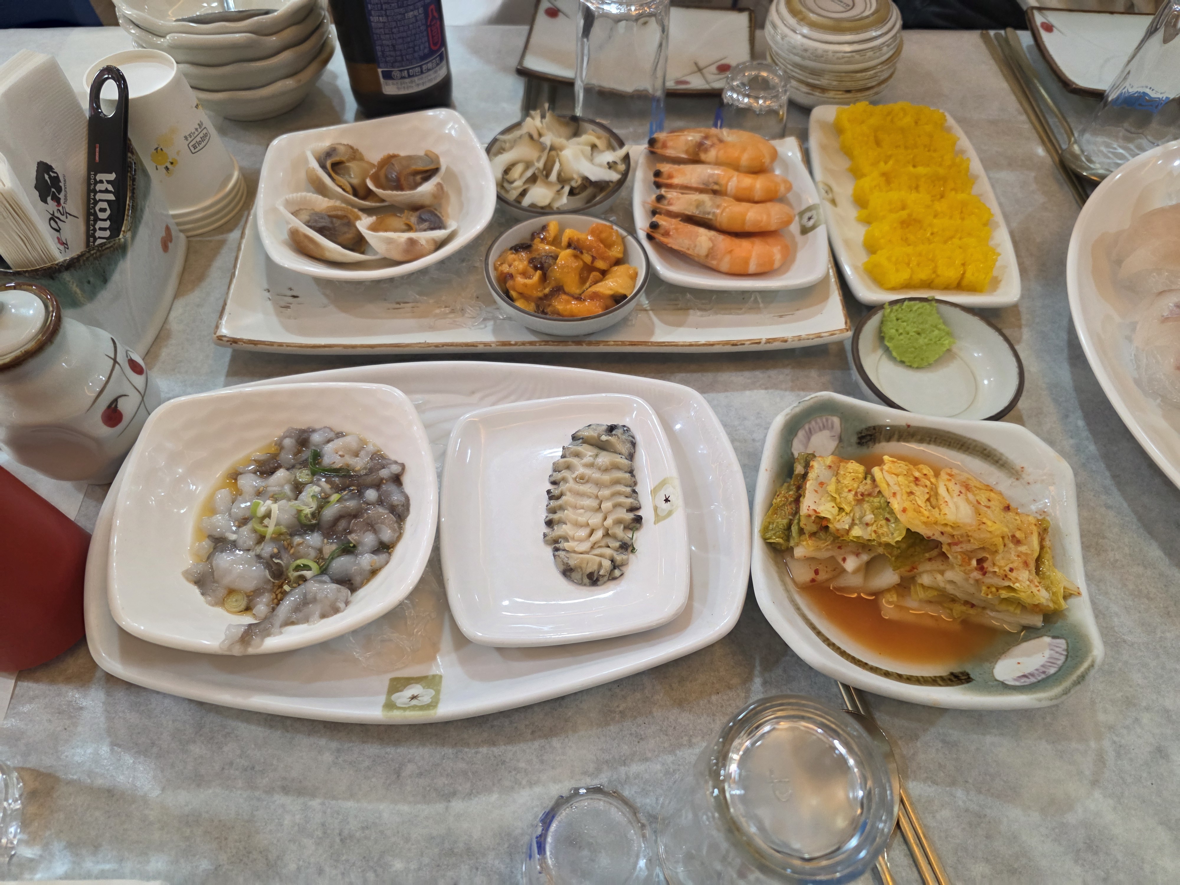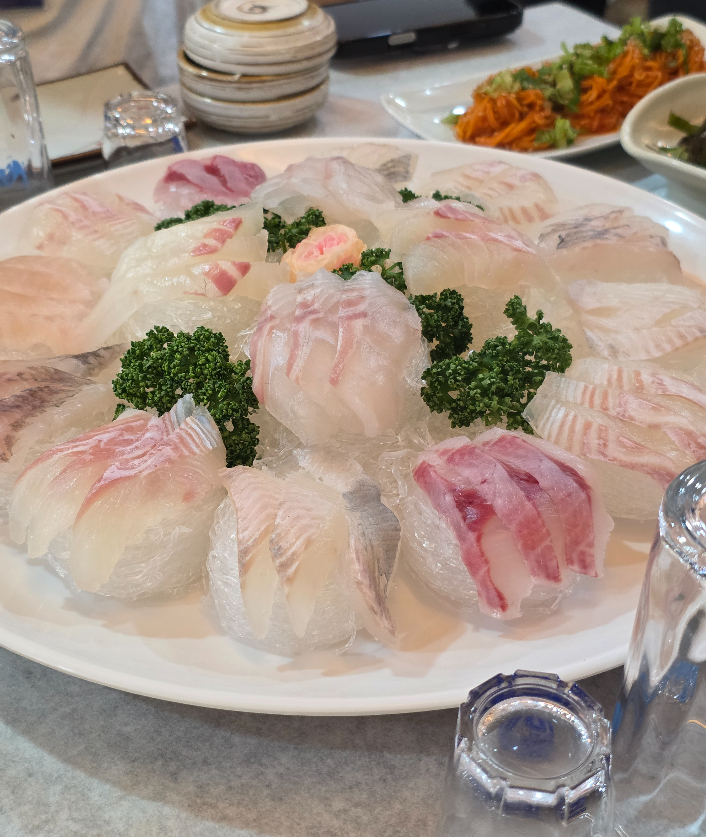 저녁에 단체관광 코스로 회먹었다 굿굿