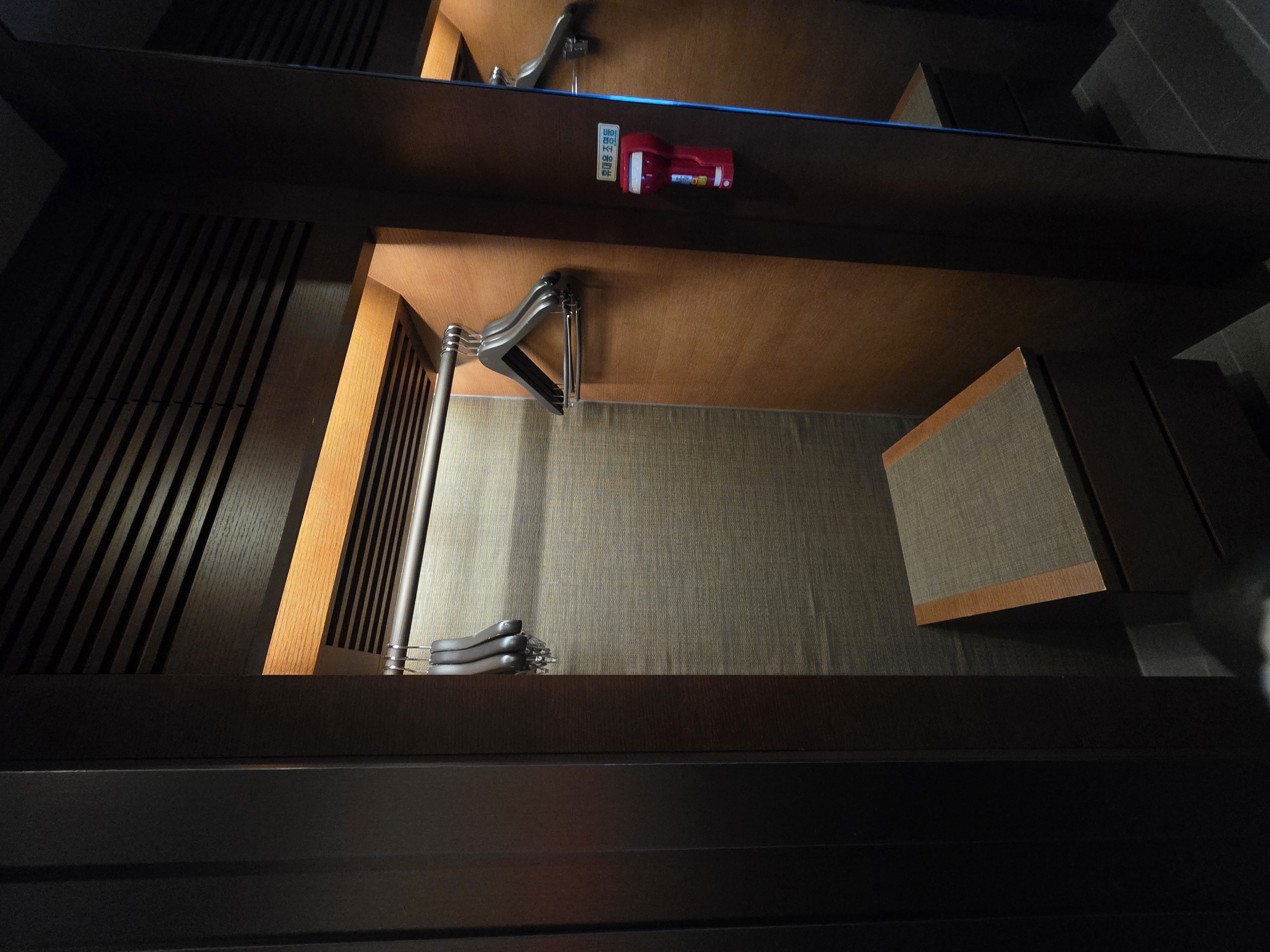 양쪽으로 각각 옷보관할 수 있는 공간이 있다.