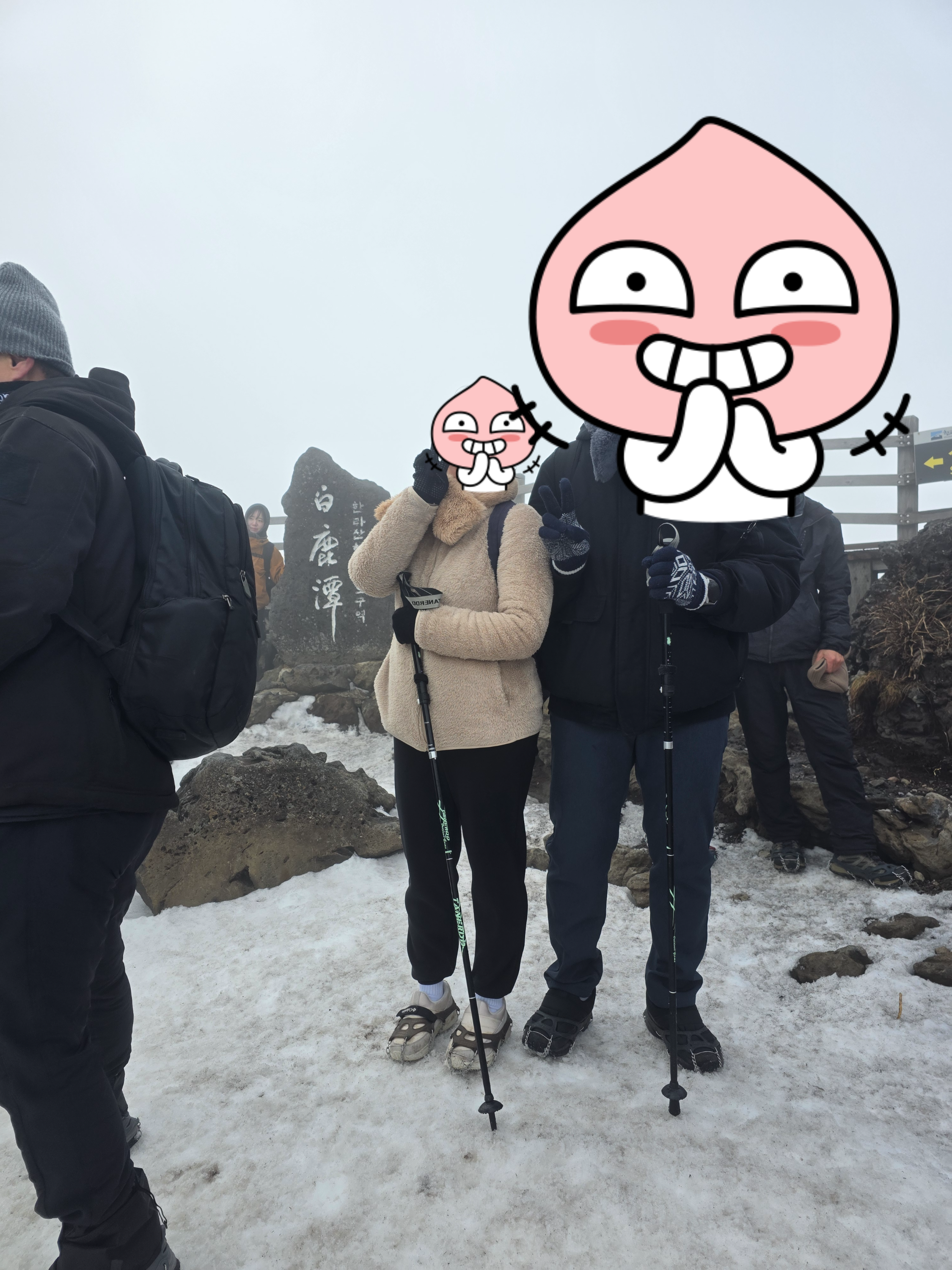 아쉽게도 정상에는 구름이 너무 많이 끼여있어서, 백록담이 전혀 안보였다.. ㅠ