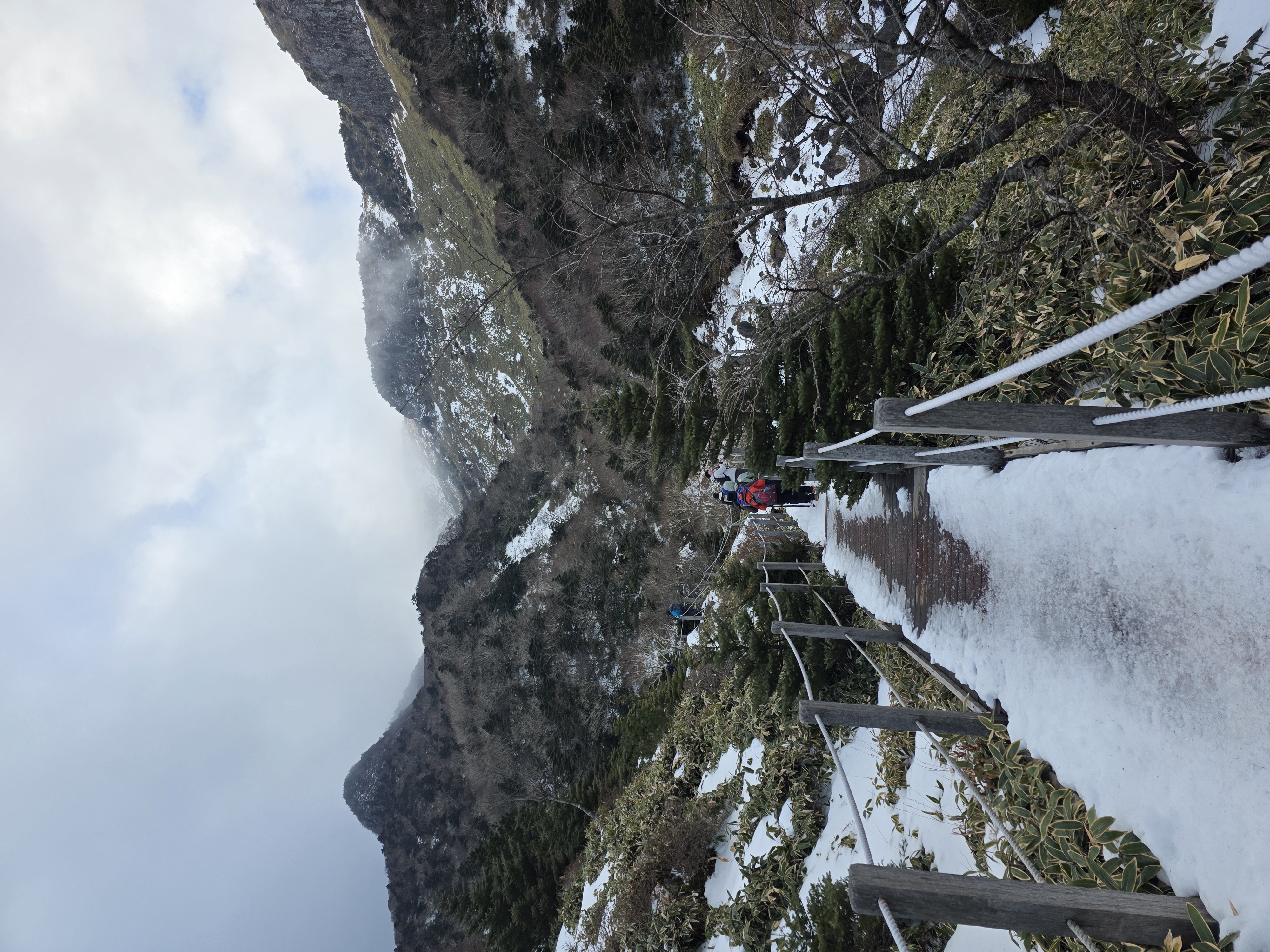 탐라계곡 화장실에서부터 본격적으로 바닥에 눈이 쌓여있었고, 이때부터 아이젠신고 올라갔다.